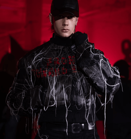 Elias’s style draws heavily from counterculture, with strong influences from punk, grunge, and militarism. His designs place a heavy emphasis on texture and detail, often incorporating distressed fabrics such as gauze, denim, and leather. With a unique perspective that blends historical influences with contemporary streetwear, Elias brings forward pieces that are both thought-provoking and wearable. He is particularly interested in upcycling, maximizing the use of natural fibers, and exploring design languages rooted in historical menswear, military wear, and popular culture. Historical context plays a key role in his creative process, giving his work both edge and depth.